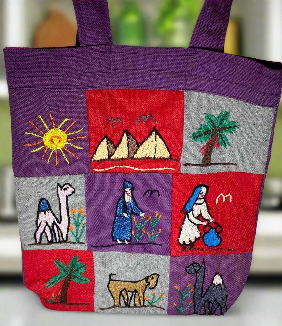 This Small Purple Patchwork Tote Bag seamlessly blends elegance with functionality. Embrace the beauty of Egyptian handicrafts.
